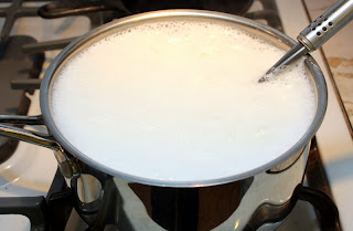 Bring the milk to a boil stirring occasionally so that the milk does not stick to the bottom of the vessel. Once it rises turn the stove off.