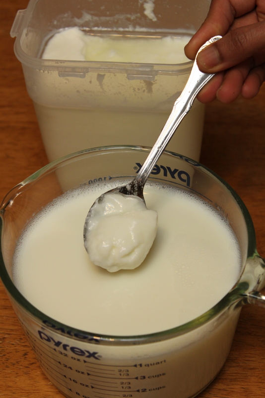 3. Now add the starter yogurt. Homemade yogurt or store bought yogurt can be used as a starter.