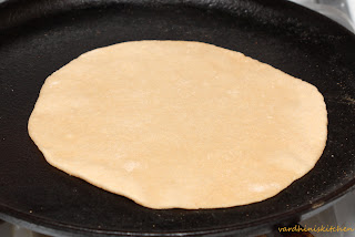 Divide the dough into 12 balls. Roll out each ball into a thin circle. Now it does not matter if you do not get a perfect circle. We just need to roll out into an even surface with no cracks. This is important for the pulka to rise.