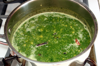 5. Add the spinach puree and the cooked dal. Mix together. Add salt.