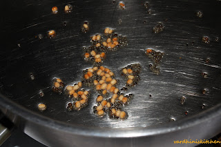 Let the okra cook on a medium-low flame. Do not add water and also do not stir frequently. I have used only 2 tsp of oil and hence cooking on a low flame. Half-way through and this is how it looks.