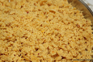 Let the balls cool for few minutes and then crumble them into small pieces.