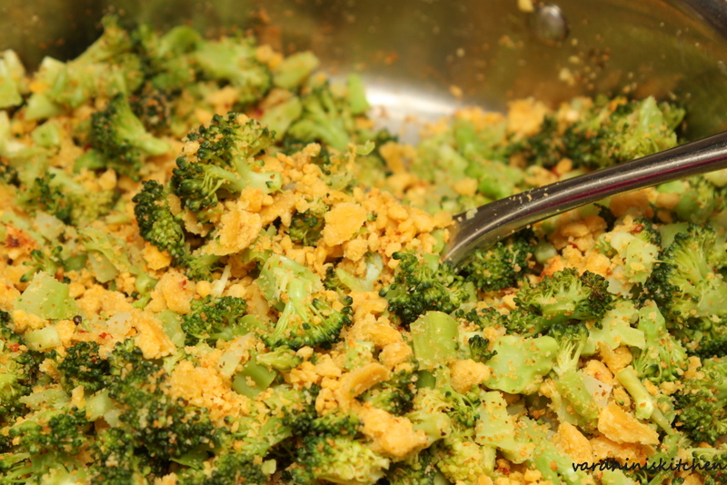 Add the steamed broccoli and mix well. Adjust salt level if needed.