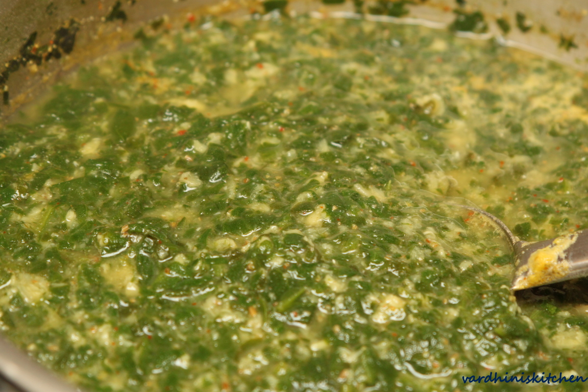 Cook the dal separately. Chop the spinach. I use a food processor.