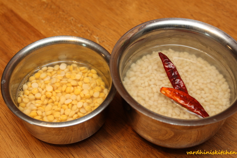 Soak the urad dal and channa dal for about 2 hours. Take a handful of the soaked urad dal and keep aside to add later. This adds crunchiness to the vadai.