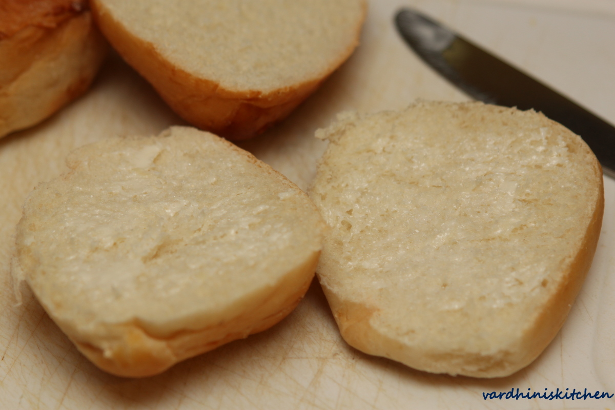 . So when I came across this recipe in ShowMeTheCurry I had to try it out. The original recipe uses hamburger buns, but I have used dinner rolls. This is a very simple recipe where we crisp up the dinner rolls in the oven. It is worth trying out.