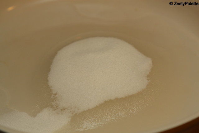 Start on the sugar syrup. Add 1 cup sugar to 1/4 cup water and bring to boil,
