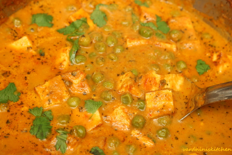 Yummy mutter paneer!!! Instead of peanuts and cashews one can also add watermelon seeds to thicken the gravy…….its also lower on the calories scale!!!!!