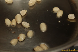 For the gravy first fry the raw peanuts in very little oil after removing the skin. Remove when done.