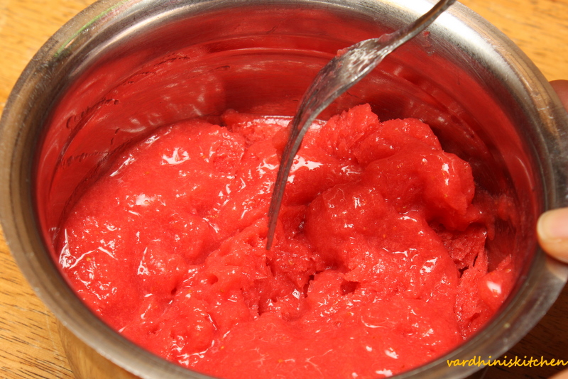 You changed your blog name and i was taken aback when dropped by. Nice choice Vardhini. Love the awesome color of the granita. next time use an aluminium vessel as it sets fast and better.