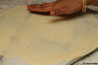 2. Next we need to roll it thick to keep the folds. If we roll it thin, the folds will be gone.