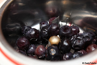 Take the blueberries in a blender. Fresh or frozen can be used. If frozen allow to thaw for say 30 minutes.