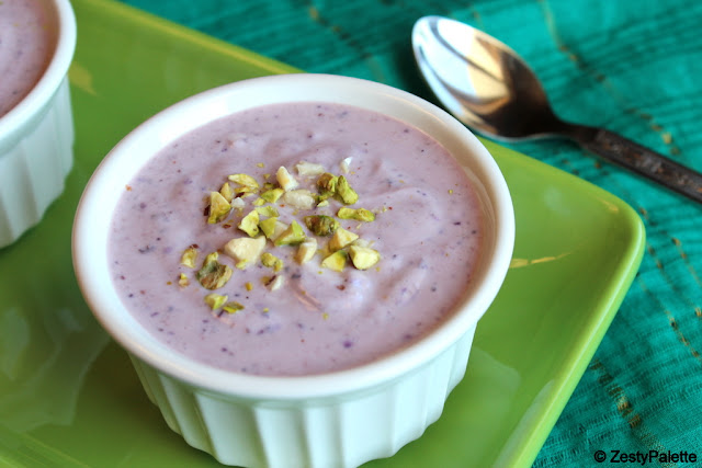 So how did blueberry shrikhand make its presence? Well as I was emptying the freezer when our fridge decided to quit working I spotted these blueberries which I had frozen sometime back. I could not get myself to throw these beauties away and they got transformed into this easy and yummy dessert. I love this dessert mainly because it is easy and uses simple ingredients unlike the finicky ones like mysore pak where if we miss a step the end product is most likely not going to be the same.