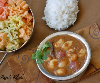 My sister Karpagam sends us Pepper Garlic Kuzhambu.