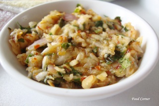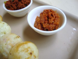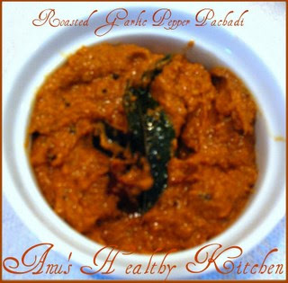 Anu of ‘Anu’s Healthy Kitchen’ sends us Roasted Garlic and Pepper Pachadi. Love its color.