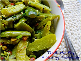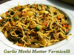 Sangee of ‘Typical Indian Cooking’ sends us Garlic Methi Mutter Vermicilli.