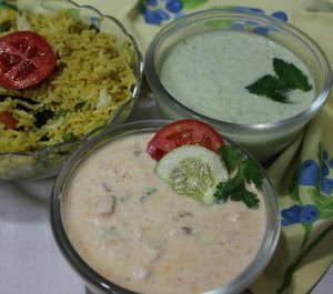 Vaishali Sabnani of ‘ribbon’s to pasta’s sends us Mint Raita…Garlicky Onion Raita.
