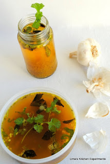 Uma of ‘My Kitchen Experiments’ sends us this yummy Garlic Rasam.