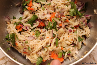 Noodle Cutlet from her blog. She has a lot of interesting recipes and I had originally planned on making Strawberry Shrikand, but my fridge broke down all of a sudden and I had to change my plan.