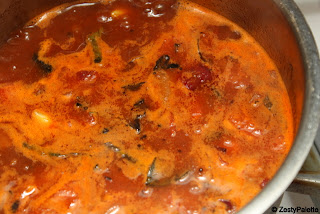 Found this in my drafts and it was dated 6/11/11. I kept postponing this thinking it was too simple to post. Then, decided that it will be useful to the newbies. Also, I have been telling my friend I will post this recipe soon and so this one sees the light of the day. Kuzhambu is basically something we mix with plain rice and eat. There are different variations to kuzhambu and each one is unique in its taste. This kuzhambu stays good for a week in the fridge. I normally make a big batch over the weekend and that makes a couple of weekday lunches a breeze. This dish is pretty hot and a little goes a long way.