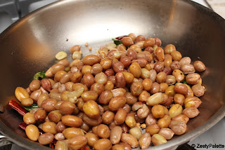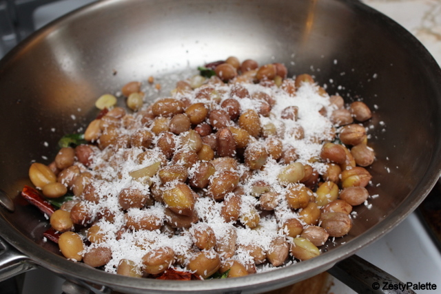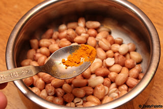 When the dal turns golden brown add the steamed peanuts.