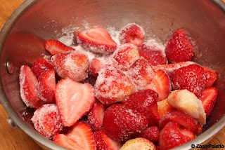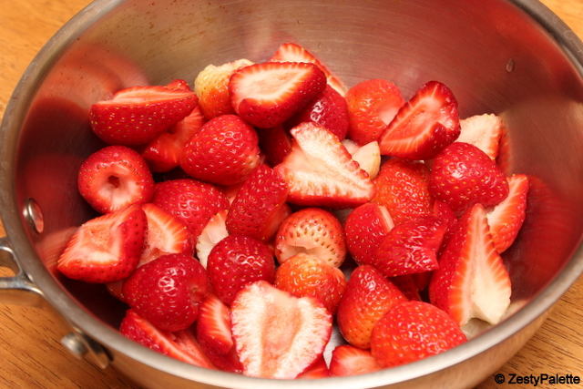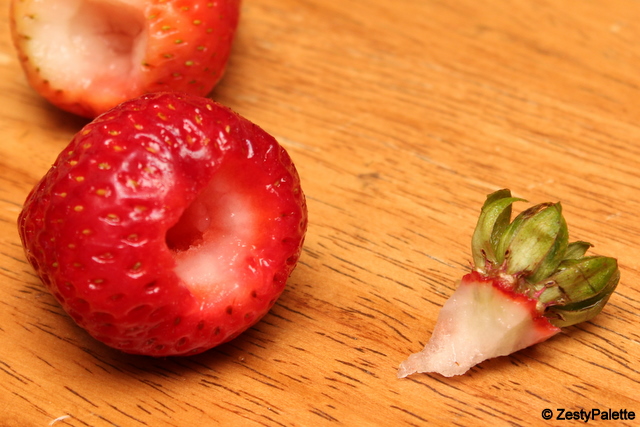 Clean and hull the strawberries. I normally use a small knife to scoop out the center part.