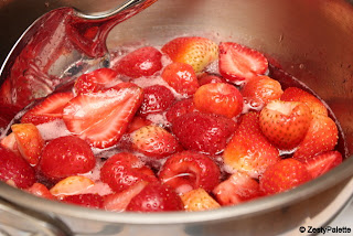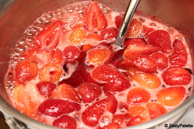 Bring the strawberry-sugar mixture to a boil slowly.