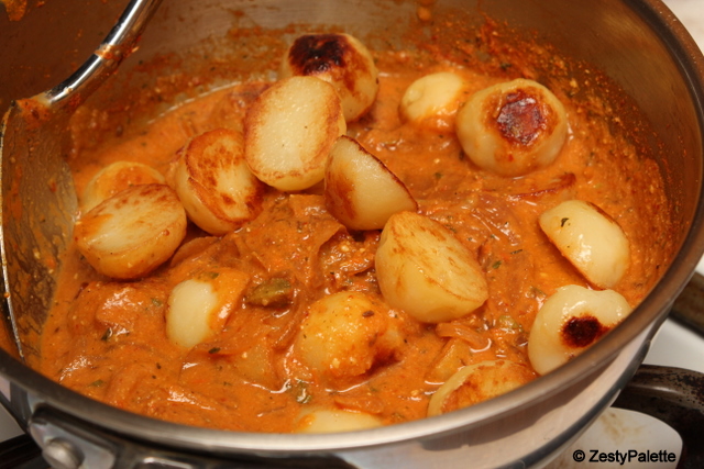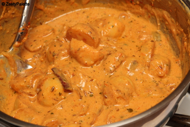 Cheers…This is for you Nithya and for all those visiting this virtual bridal shower!!Dum Aloo has been on my list for quite some time and is a nice dish to have on a party menu. I paired it with