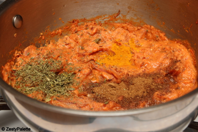 Add salt and spice powders. (Turmeric, garam masala and kasturi methi.)