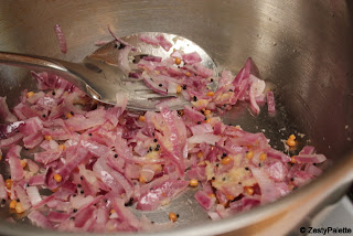 When the onions are almost cooked, add the ginger paste. Saute for few minutes.