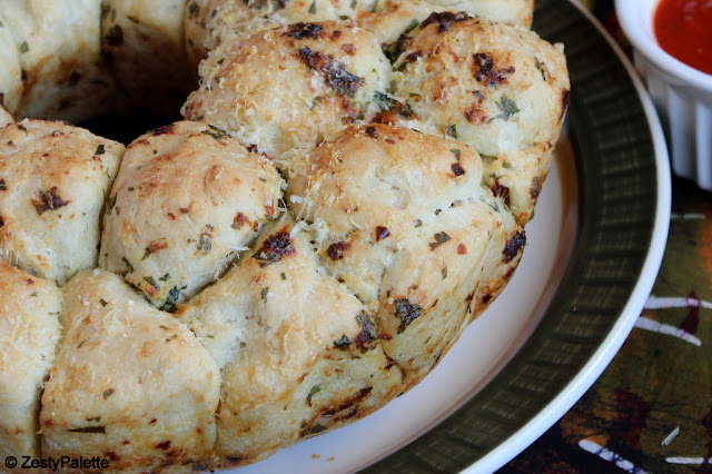 After all the festival recipes I certainly needed a change. I have always been fascinated by bundt cakes and purchased the pan. I was not able to narrow down any recipe and with all the festival recipes I did not find time to bake and the poor pan was tucked away neatly in the cabinet. So when I saw this pull-apart bread made using a bundt pan I was simply carried away as it was a win-win situation for me. I get to bake my favorite bread and also use the pan. No worries if you don’t have a bundt pan, you can arrange the balls in any baking pan. In the end all which matters is the taste and not the shape of pan used right?