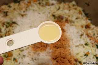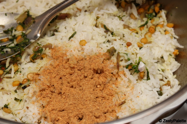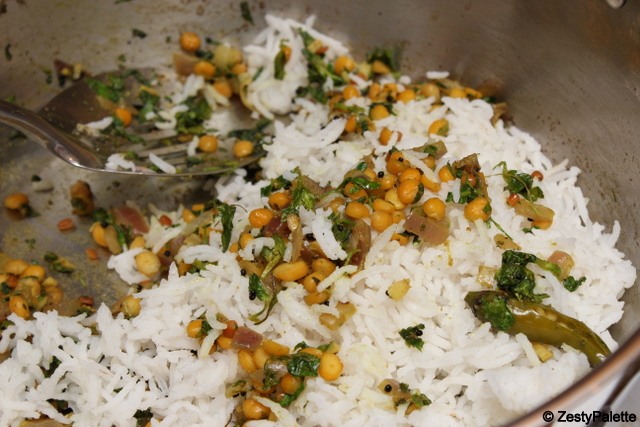 Cook the rice and allow to cool. Prepare the masala as mentioned in the capsicum rice post.