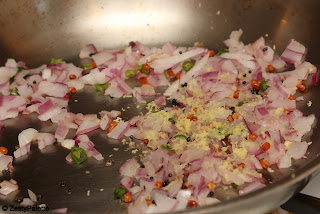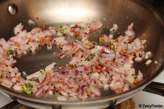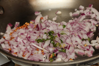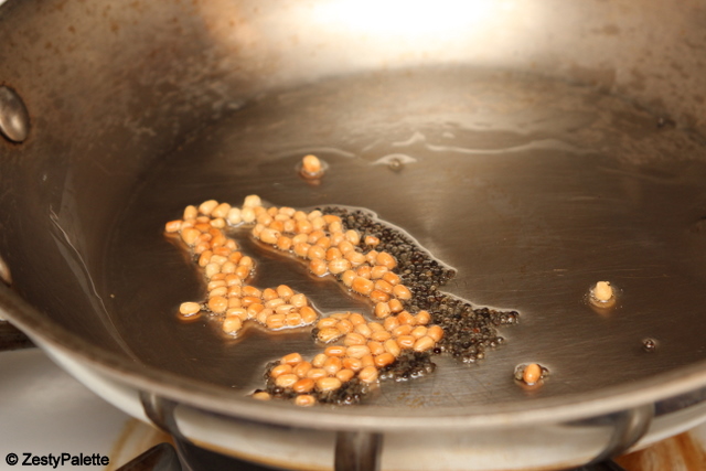 Heat oil and add mustard seeds. When they pop add urad dal.