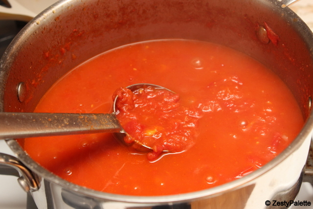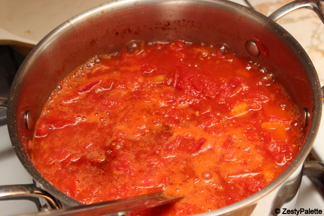 Now add the fenugreek powder and reduce flame to medium. Cover the pot partially and cook until the tomatoes thicken up to a jam like consistency.