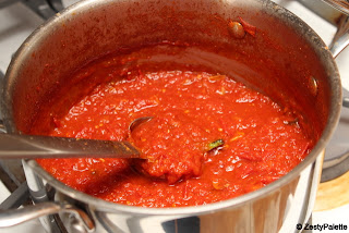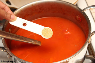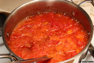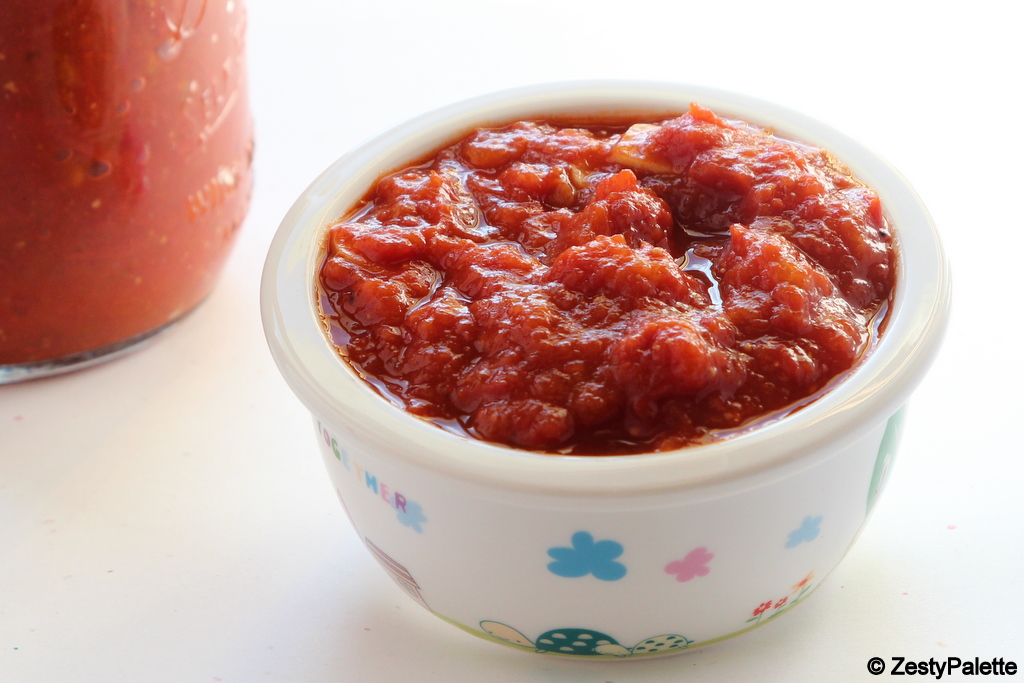There was an interesting experience last year when I made this pickle. As usual during the fall I set about making this pickle and I normally halve the recipe. When I did a taste test, I found it to be salty and I could not understand why. Blame it on the fact that I was making the pickle pretty late at night after a long day that my brain refused to cooperate. So I started adding more tomatoes to compensate, but nothing helped. I was at my wits end since I have made this same pickle n times before. It was then that it suddenly dawned that I had added the original amount of salt although the other ingredients were halved. I was dumb struck for few seconds and then set about working in high-speed to double the other ingredients. It was hard work and I had to pull tomatoes from every nook and corner of the house and also transfer the pickle to a bigger vessel. Phew .. and the pickle took few more hours to reduce. Lesson learnt : If halving the recipe, write it down to avoid such accidents.