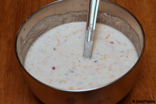 Mix well. Dilute the batter using little water if necessary. Consistency should be that of dosa batter.