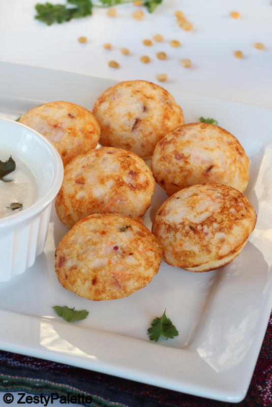 Day 3 of the blogging marathon and my theme is “Guilt Free Snacks”. This paniyaram is made with leftover idli or dosa batter, but any time I have leftover batter I always end up making a dosa called “Pongalam”. So I made these with fresh batter just so I don’t keep missing it.