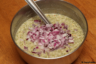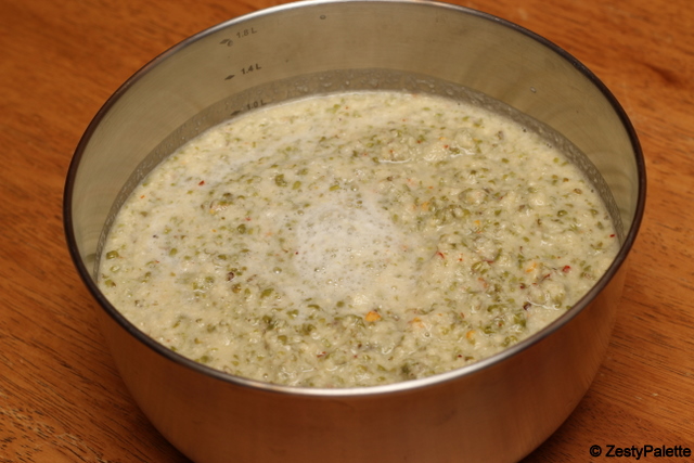 Add water and blend to a coarse consistency like that of a dosa batter. There is no need to ferment and you can use the batter right away.