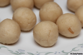 Mix well to form a dough. The dough can be sticky. Refrigerate for 3-4 hours and it will stiffen up to form balls.