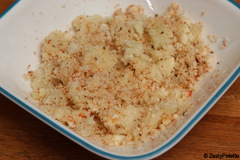 Add 1/2 tsp salt to shredded cauliflower and keep aside.