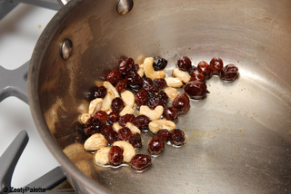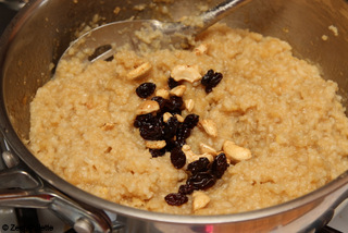 Add the cashews and raisins.
