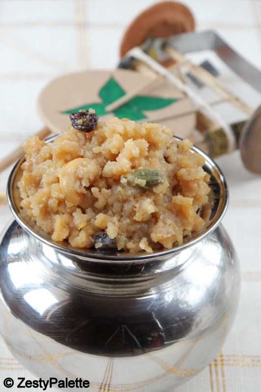 I made Sakkarai Pongal over the weekend just so I don’t have to deal with taking pictures on 14th. The recipe is from my mom. This time I did try with darkened jaggery, but it was still not dark enough