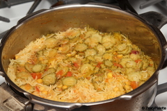 The rice looks a bit clumpy because it is leftover sona masoori rice. Use cooked and cooled basmati rice instead.