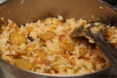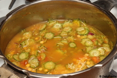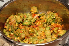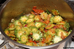 Follow the same steps as above until the step where you have to add uncooked rice. Instead of adding uncooked rice, allow the bitter gourd and channa dal to cook.