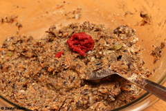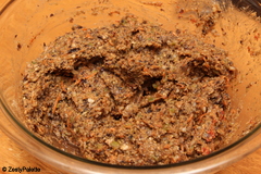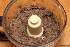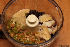 Take the cooked vegetables, black beans, boiled potato and flax mix in a food processor.
