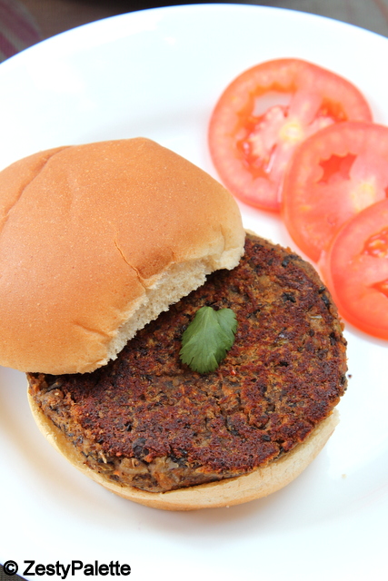 It is funny that I sometimes decide to cook something big because I want to make something small like the cucumber pickle. Yeah, that is how the black bean burger appeared in the kitchen. I have seen black bean burgers in the frozen section in Costco, but never tried them and always stuck with the veggie burgers. So for a change I decided to try them at home.