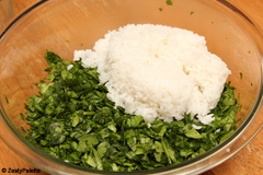 Take cooked rice and spinach in a bowl.