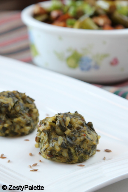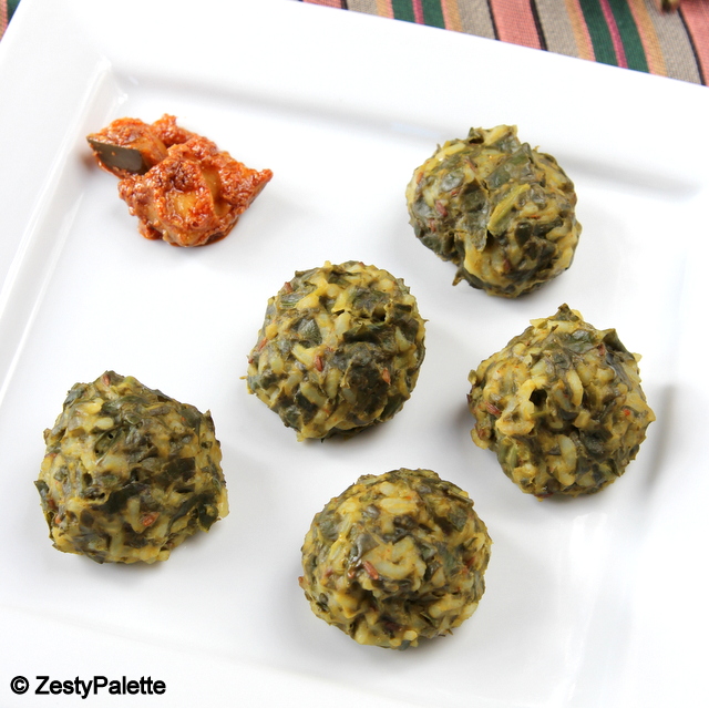 Today is a healthy and easy recipe. I recently won a giveaway by Amibikaskitchen and received the wonderful book “Anjum’s New Indian”. Flipping through the pages of the book, the first recipe that caught my attention was this spinach and rice dumpling since we love spinach. Added to that I had tons of fresh spinach waiting to be used in the fridge.