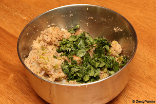 Add onions to the soya chunks and chop finely. Use a chopper or food processor.