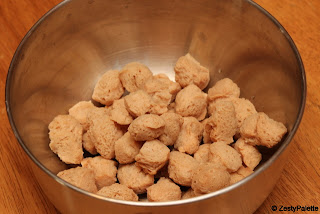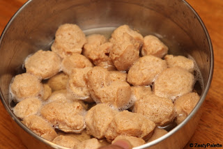 Soak the soya chunks in warm water for 15 minutes. They plump up on soaking.